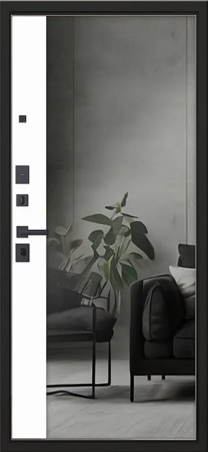 Порошковое покрытие "муар черный". . Экошпонированная панель МДФ 10 мм (цвет «альянс TF 40 IE-X-89U графит»). Декоративный молдинг 10 мм (цвет «черный»). Наличник гладкий МДФ 80 мм (цвет «черный кварц»).